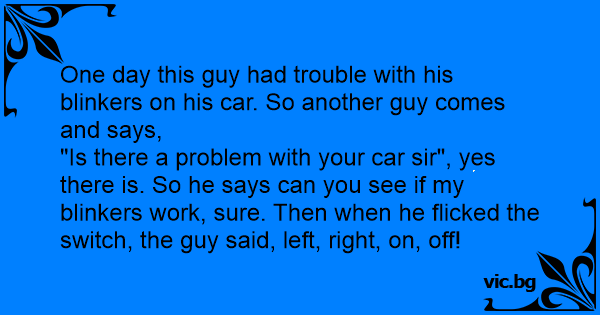 One day this guy had trouble with his blinkers on his car. So another guy comes and says,