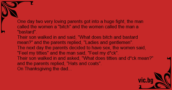 One day two very loving parents got into a huge fight, the man called the women a "вiтсh" and the women called the man a "ваsтаrd".