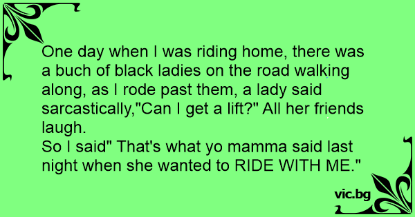 So I said" That's what yo mamma said last night when she wanted to RIDE WITH ME."