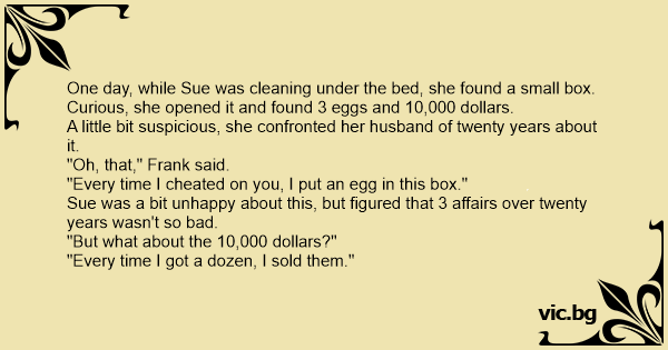 "Every time I cheated on you, I put an egg in this box."