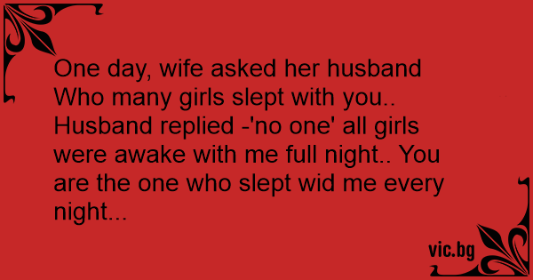 Who many girls slept with you.. Husband replied -'no one' all girls were awake with me full night.. You are the one who slept wid me every night...