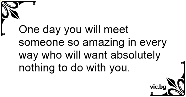 One day you will meet someone so amazing in every way who will want absolutely nothing to do with you.