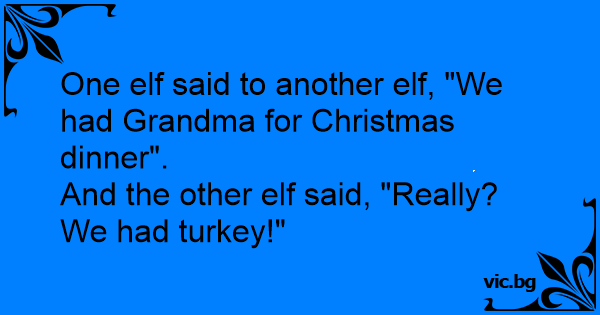 One elf said to another elf, "We had Grandma for Christmas dinner".