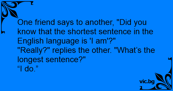 One friend says to another, "Did you know that the shortest sentence in the English language is 'I am'?"