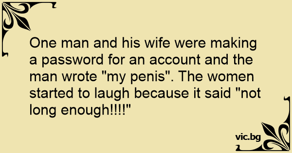 One man and his wife were making a password for an account and the man wrote "my реnis". The women started to laugh because it said "not long enough!!!!"