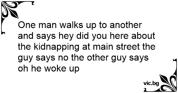 One man walks up to another and says hey did you here about the kidnapping at main street the guy says no the other guy says oh he woke up