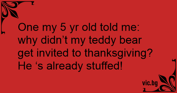 One my 5 yr old told me: why didn’t my teddy bear get invited to thanksgiving?