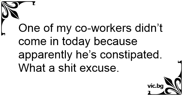 One of my co-workers didn’t come in today because apparently he’s constipated.