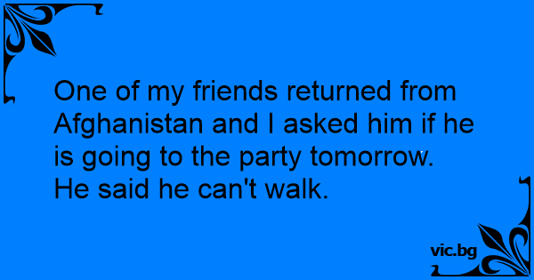 One of my friends returned from Afghanistan and I asked him if he is going to the party tomorrow.
