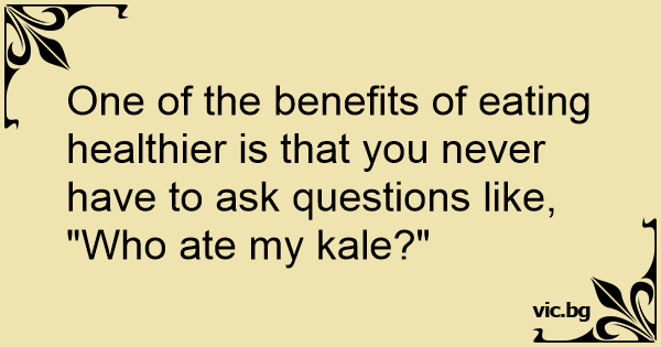 One of the benefits of eating healthier is that you never have to ask questions like, "Who ate my kale?"