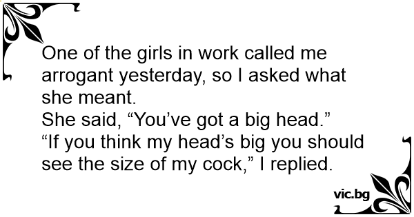 “If you think my head’s big you should see the size of my соск,” I replied.
