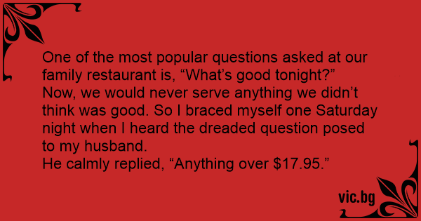 One of the most popular questions asked at our family restaurant is, “What’s good tonight?”