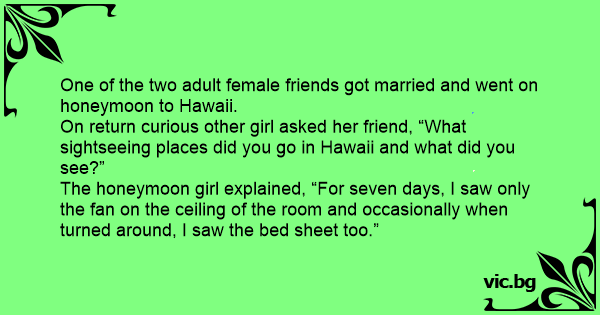 One of the two adult female friends got married and went on honeymoon to Hawaii.