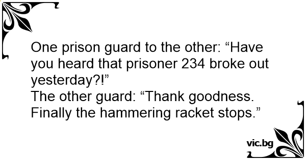 One prison guard to the other: “Have you heard that prisoner 234 broke out yesterday?!”