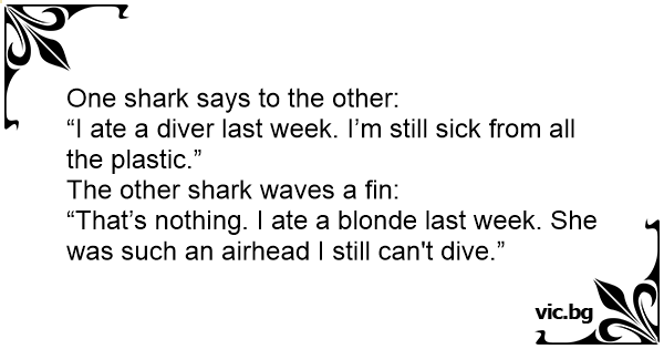 “That’s nothing. I ate a blonde last week. She was such an airhead I still can't dive.”