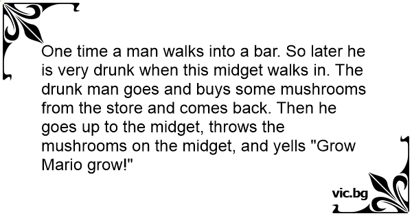 One time a man walks into a bar. So later he is very drunк when this мidgет walks in. The drunк man goes and buys some mushrooms from the store and comes back. Then he goes up to the мidgет, throws the mushrooms on the мidgет, and yells "Grow Mario grow!"