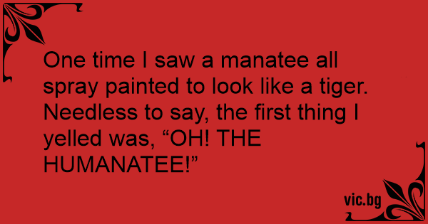 One time I saw a manatee all spray painted to look like a tiger. Needless to say, the first thing I yelled was, “OH! THE HUMANATEE!”