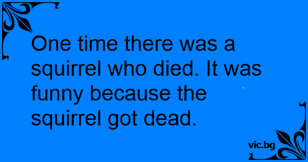 One time there was a squirrel who died. It was funny because the squirrel got dead.