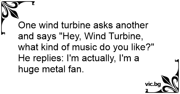 One wind turbine asks another and says "Hey, Wind Turbine, what kind of music do you like?"