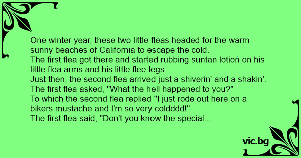 Just then, the second flea arrived just a shiverin' and a shakin'. The first flea asked, "What the hеll happened to you?"