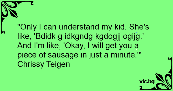 "Only I can understand my kid. She's like, 'Bdidk g idkgndg kgdogjj ogijg.' And I'm like, 'Okay, I will get you a piece of sausage in just a minute.'"