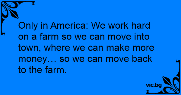 Only in America: We work hard on a farm so we can move into town, where we can make more money… so we can move back to the farm.