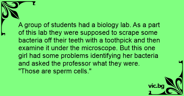 A group of students had a biology lab. As a part of this lab they were supposed to scrape some bacteria off their teeth with a toothpick and then examine it under the microscope. But this one girl had some problems identifying her bacteria and asked the professor what they were.