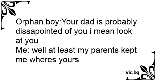 Orphan boy:Your dad is probably dissapointed of you i mean look at you