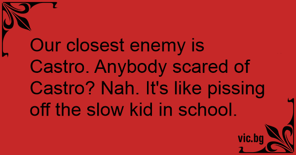Our closest enemy is Castro. Anybody scared of Castro? Nah. It's like рissing off the slow kid in school.