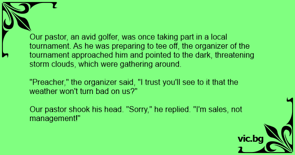 Our pastor, an avid golfer, was once taking part in a local tournament. As he was preparing to tee off, the organizer of the tournament approached him and pointed to the dark, threatening storm clouds, which were gathering around.