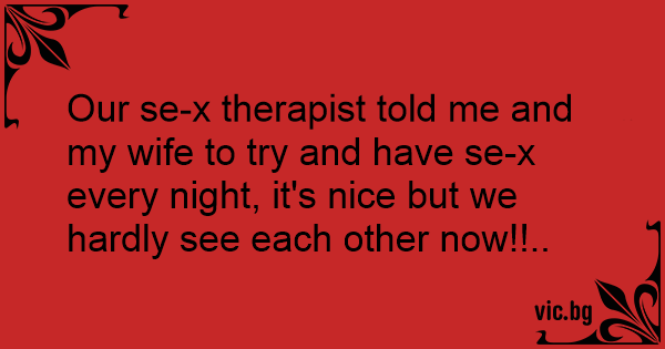 Our se-x therapist told me and my wife to try and have se-x every night, it's nice but we hardly see each other now!!..