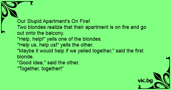 Two blondes realize that their apartment is on fire and go out onto the balcony.