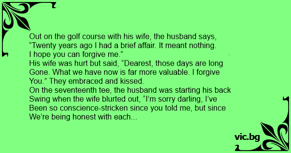 Out on the golf course with his wife, the husband says,