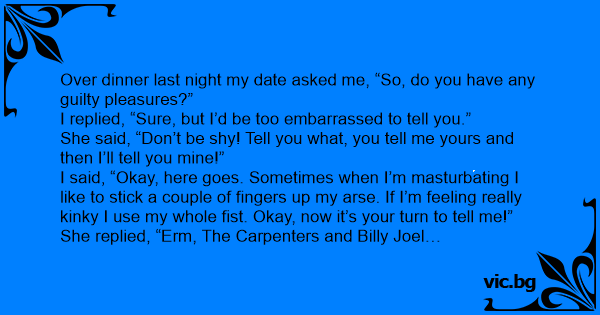Over dinner last night my date asked me, “So, do you have any guilty pleasures?”