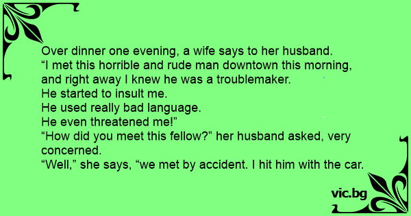 “I met this horrible and rude man downtown this morning, and right away I knew he was a troublemaker.