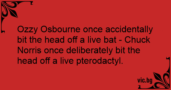 Ozzy Osbourne once accidentally bit the head off a live bat - Chuck Norris once deliberately bit the head off a live pterodactyl.