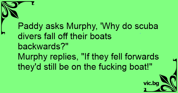 Раddy asks Murphy, 'Why do scuba divers fall off their boats backwards?"