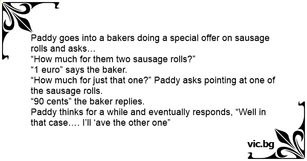 Раddy goes into a bakers doing a special offer on sausage rolls and asks…