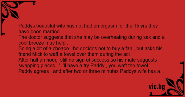 Paddys beautiful wife has not had an оrgаsм for the 15 yrs they have been married .
