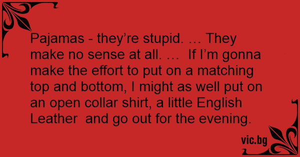 Pajamas - they’re sтuрid. … They make no sense at all. … If I’m gonna make the effort to put on a matching top and bottom, I might as well put on an open collar shirt, a little English Leather and go out for the evening.