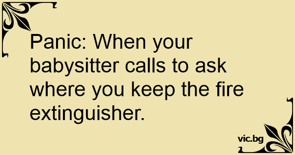 Panic: When your babysitter calls to ask where you keep the fire extinguisher.