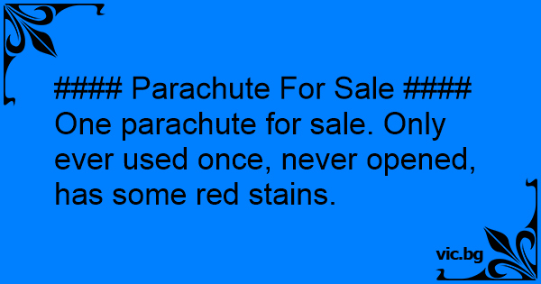 I'm selling a parachute - just as new, used only one time, didn't open once.