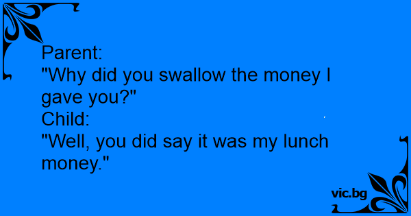 "Well, you did say it was my lunch money."