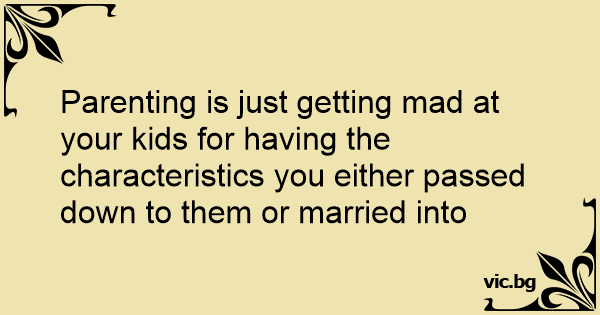 Parenting is just getting mad at your kids for having the characteristics you either passed down to them or married into
