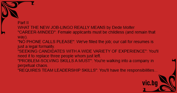 WHAT THE NEW JOB-LINGO REALLY MEANS by Dede Molter