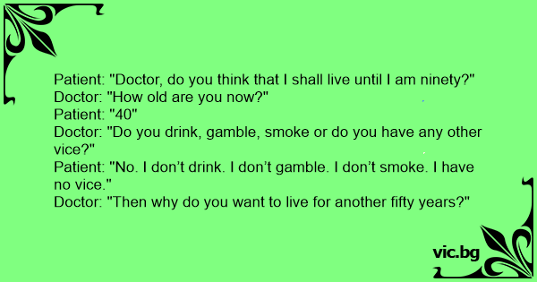 Doctor: "Do you drink, gamble, smoke or do you have any other vice?"