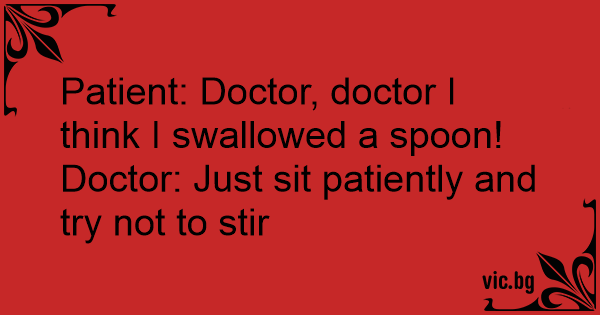 Patient: Doctor, doctor I think I swallowed a spoon!