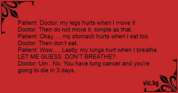 Doctor: Um.. No. You have lung cancer and you’re going to die in 3 days.