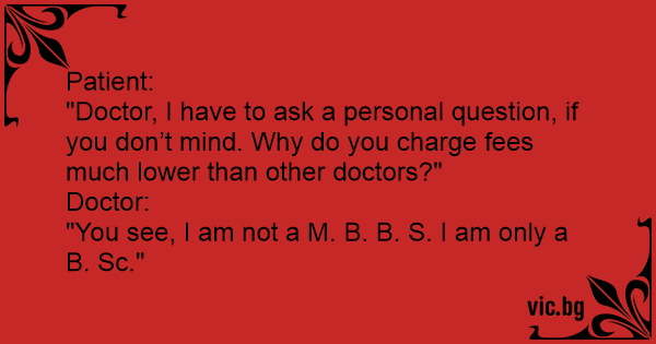 "Doctor, I have to ask a personal question, if you don’t mind. Why do you charge fees much lower than other doctors?"