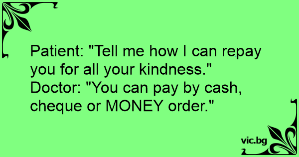 Doctor: "You can pay by cash, cheque or MONEY order."